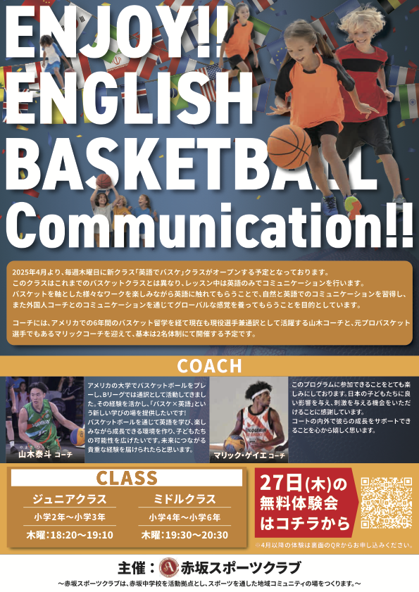 プロ選手と英語でバスケ!主体性とチームプレーを育むバスケ教室